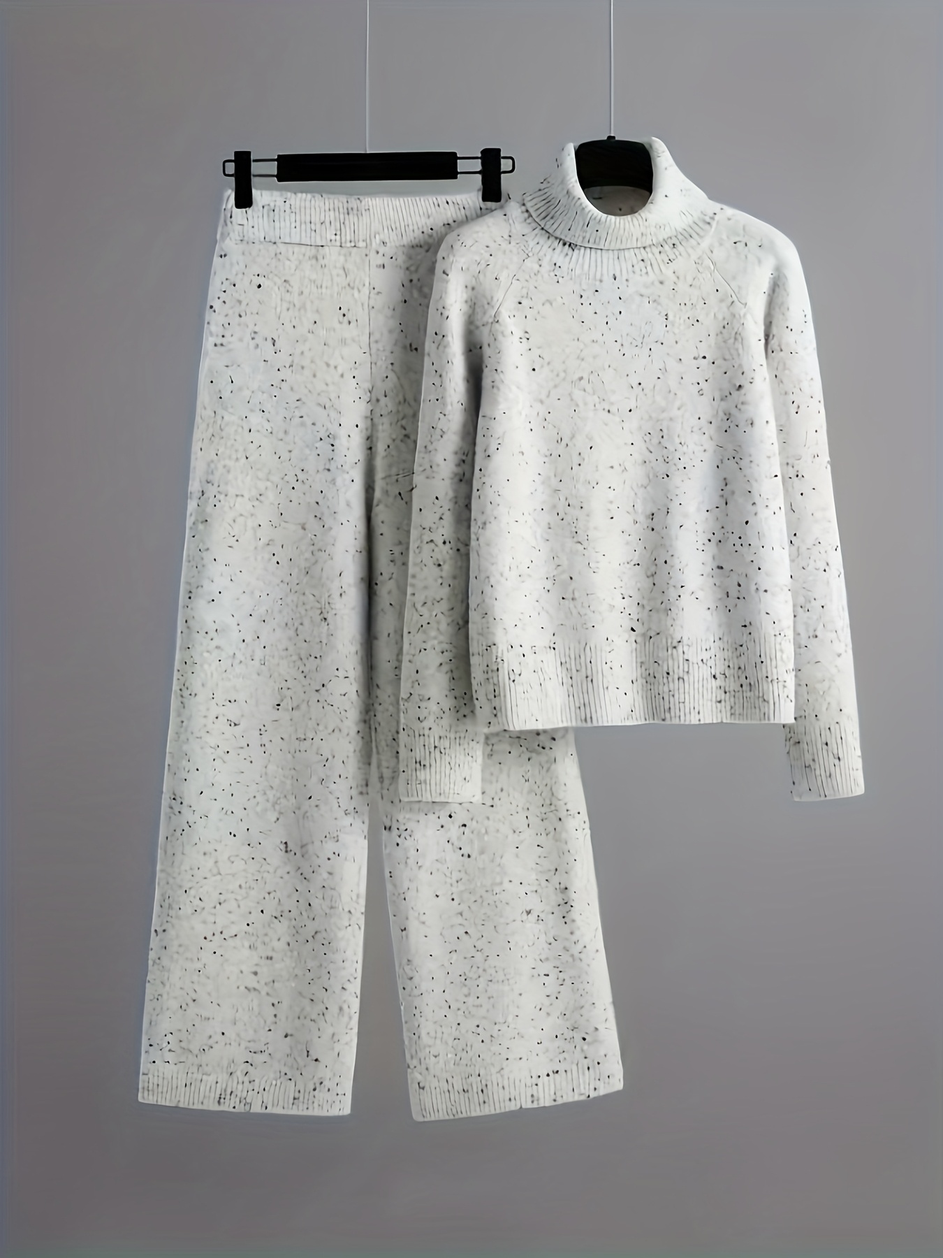 Elegant Women's Set High-Neck Long-Sleeve Sweater and Matching Pants.
