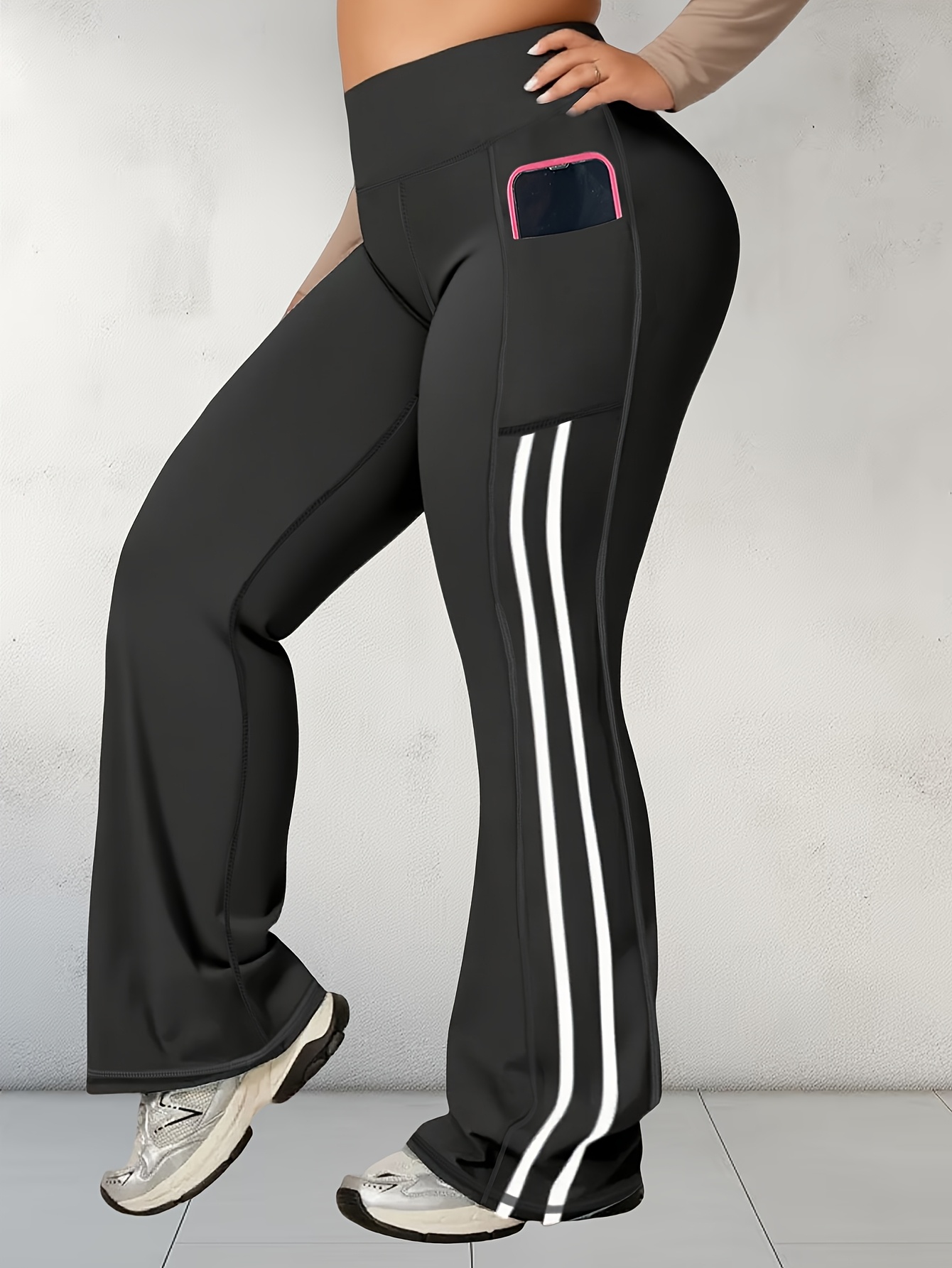 Plus-Size Women's Side Stripe Pocket Flared Pants.