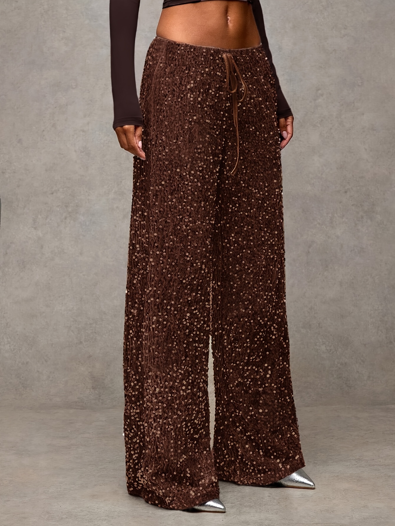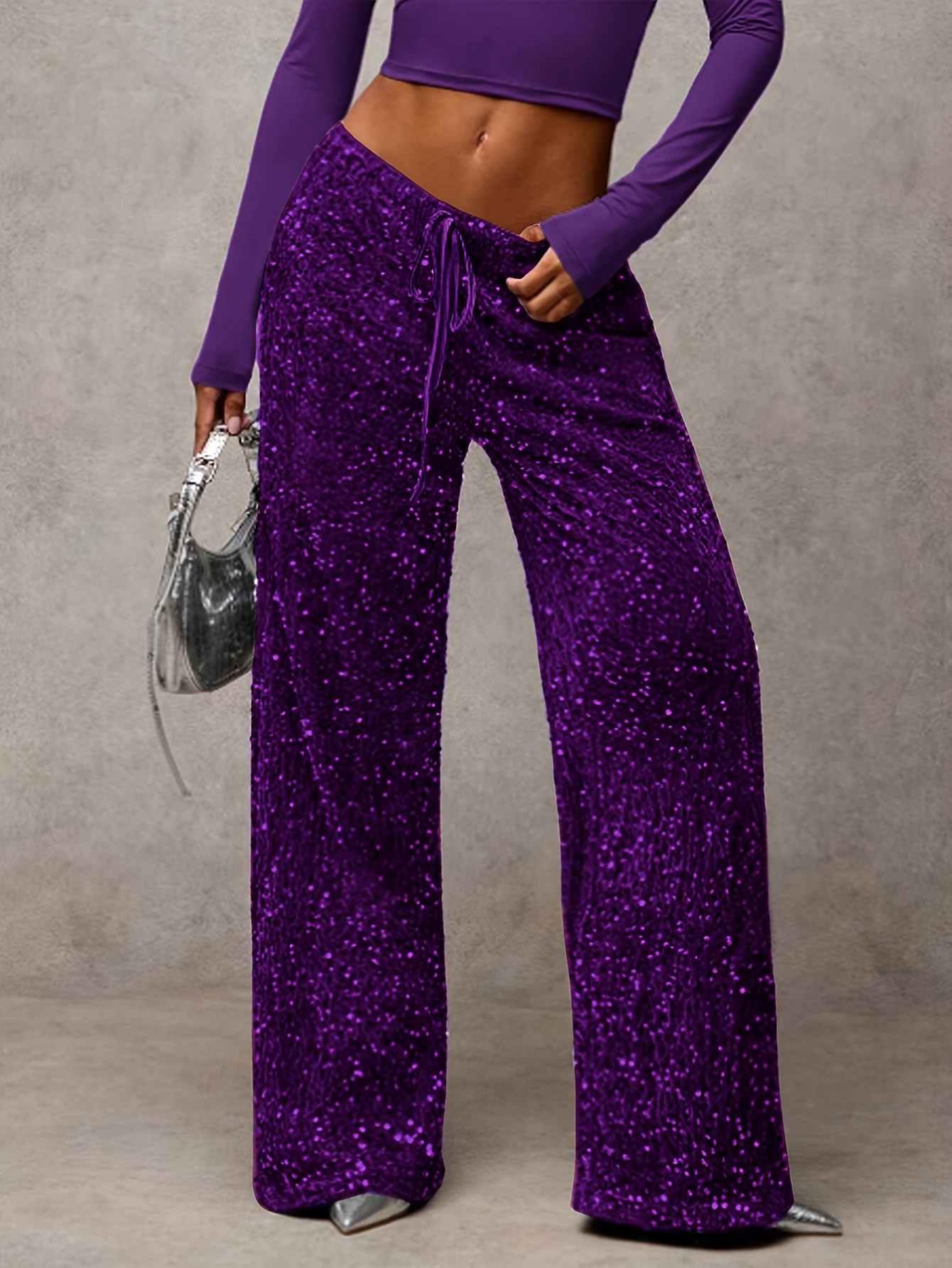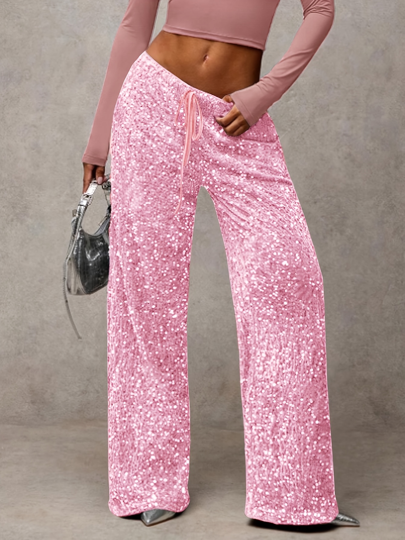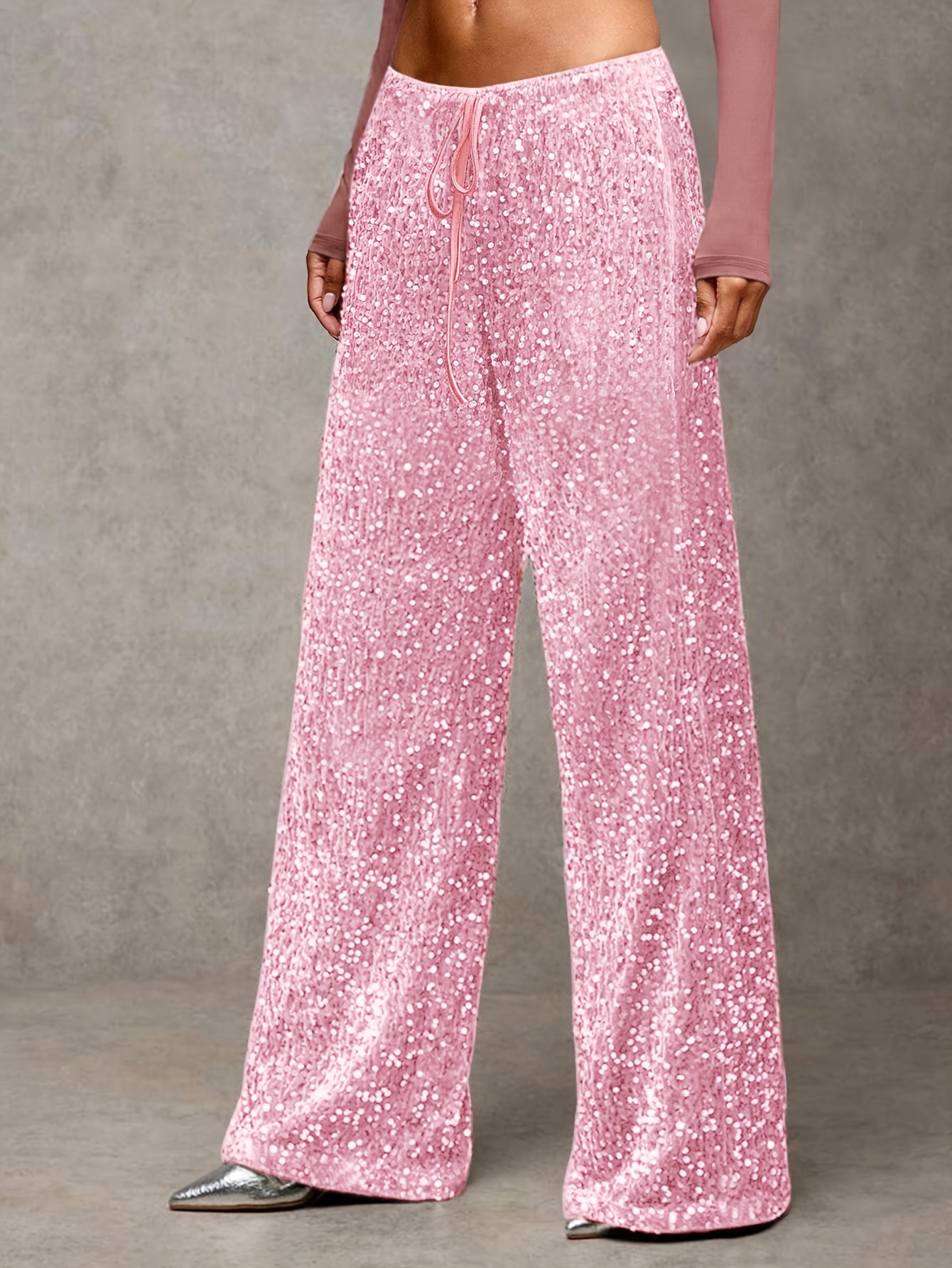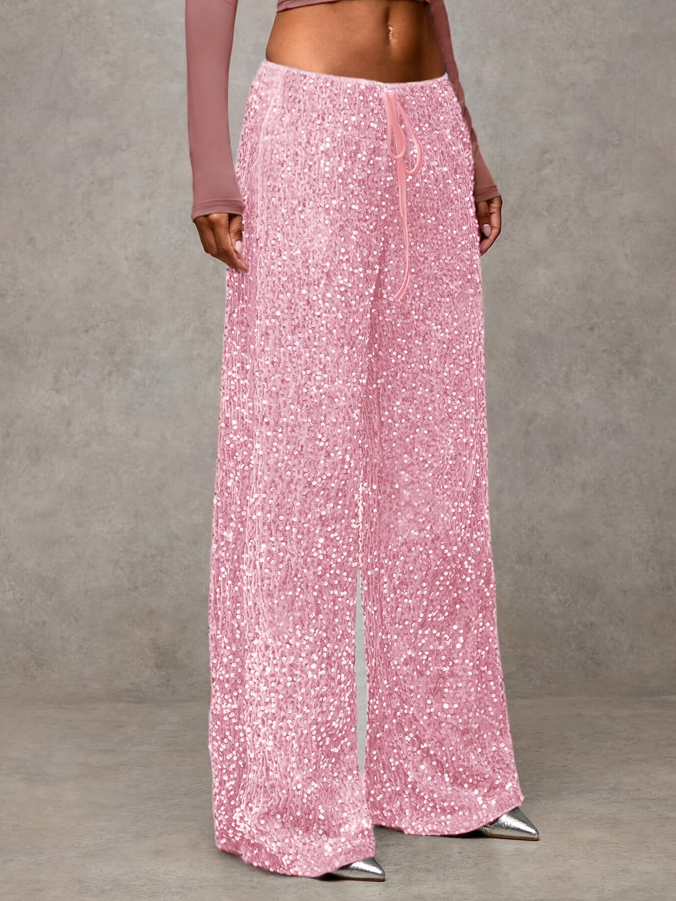 Women's Front-tie Bow Sequin Trousers, Elegant Targeted Style.
