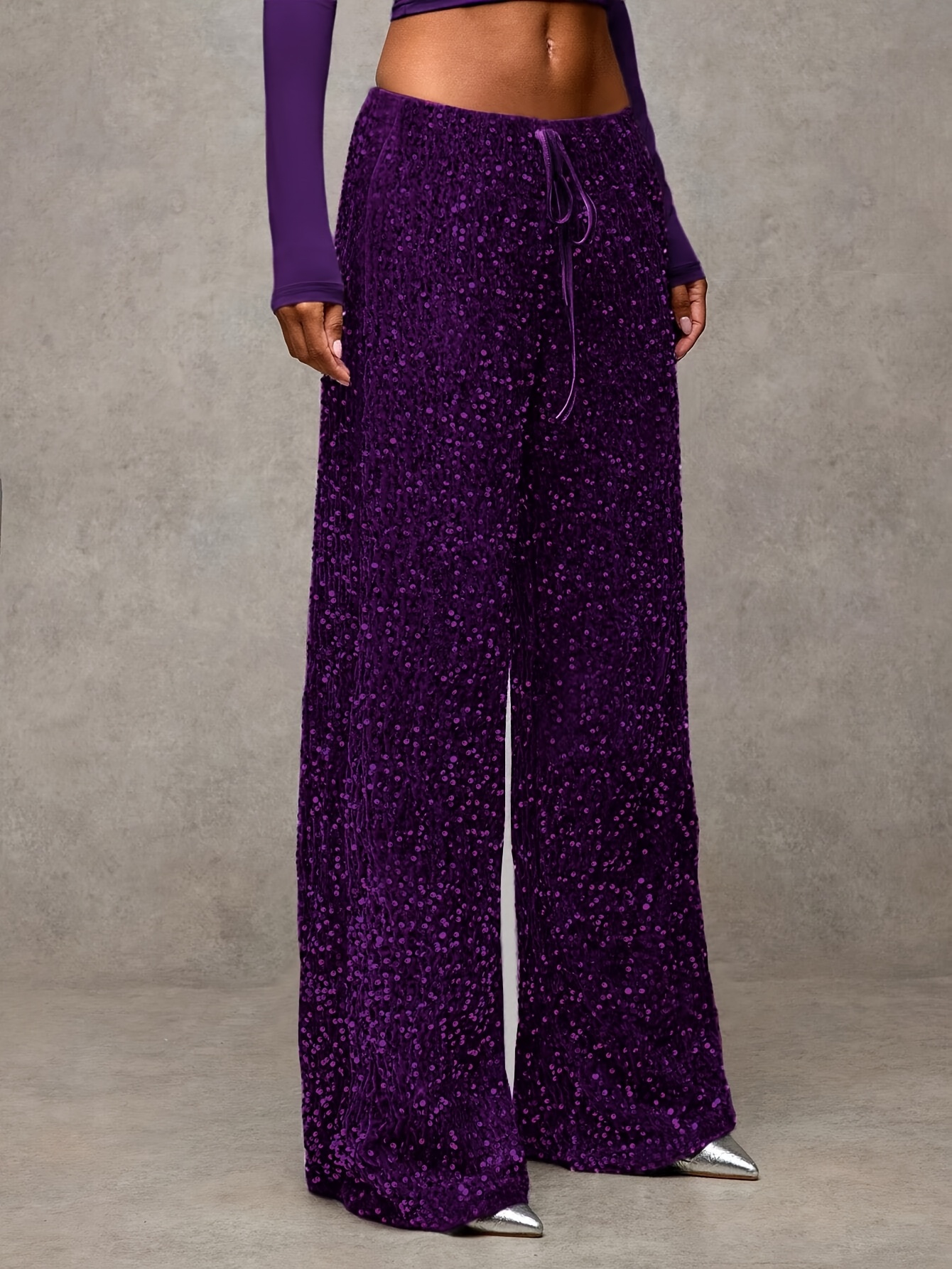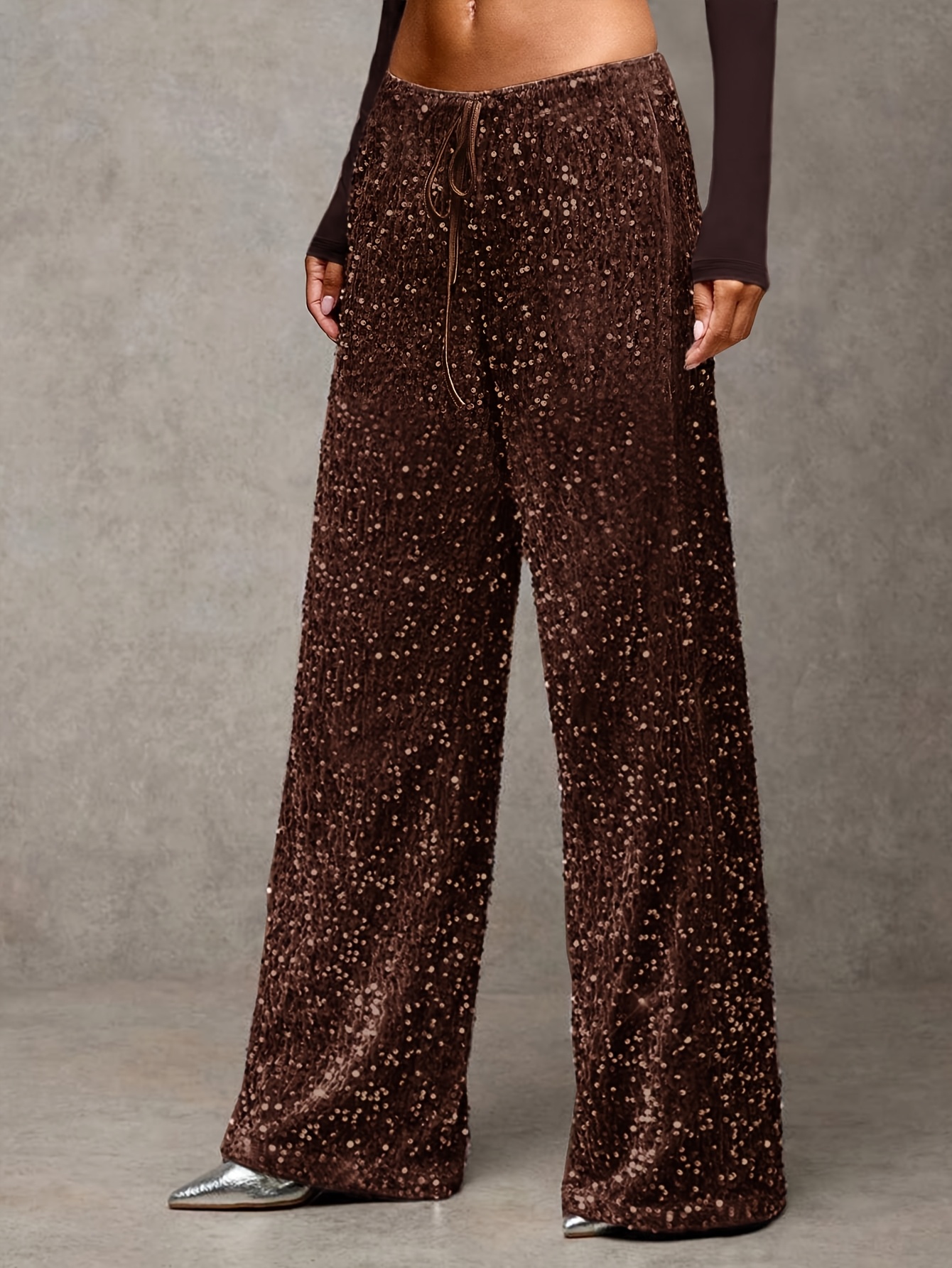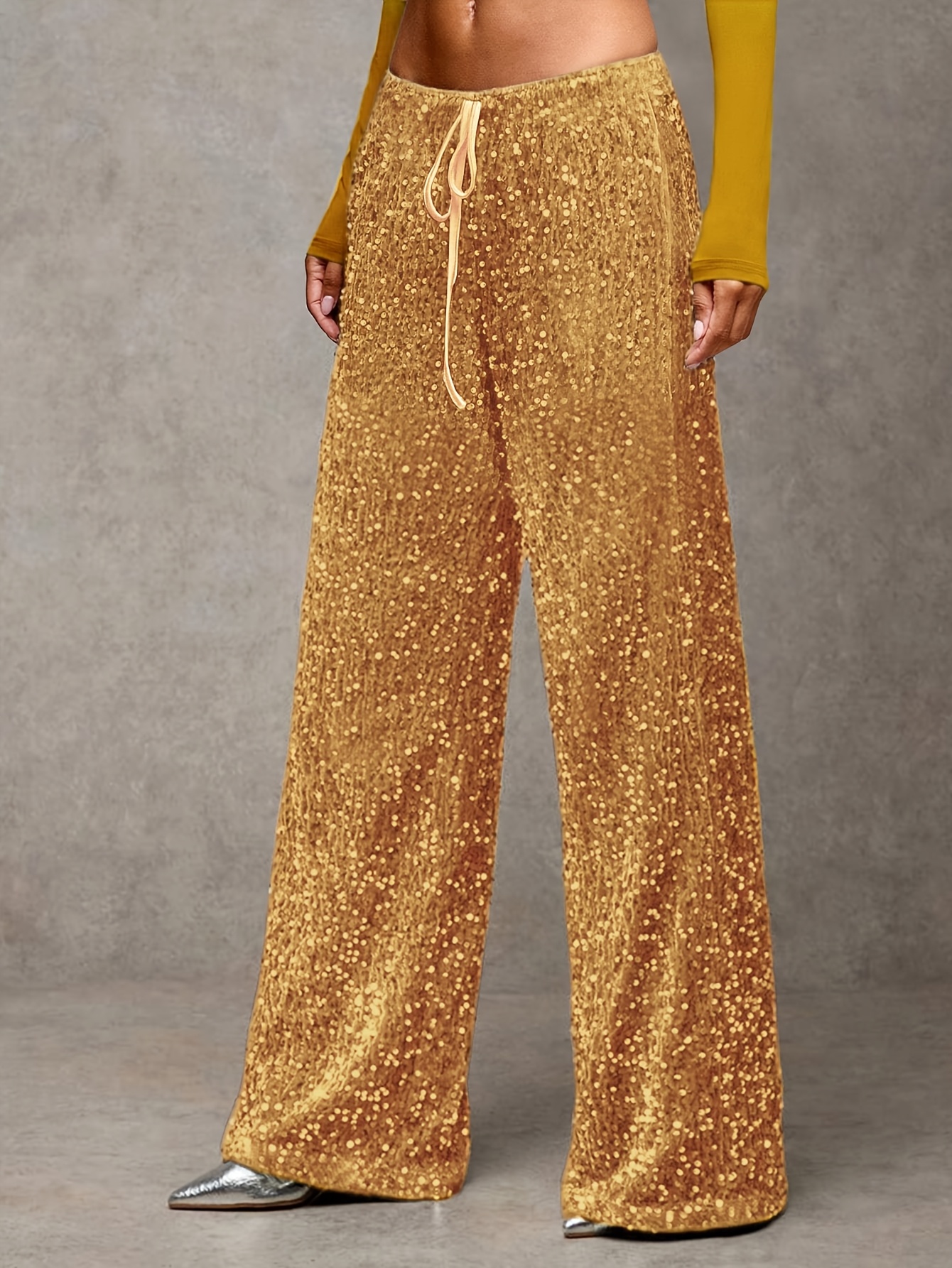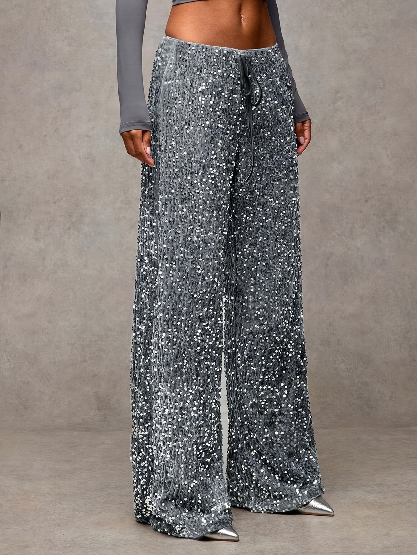 Women's Front-tie Bow Sequin Trousers, Elegant Targeted Style.