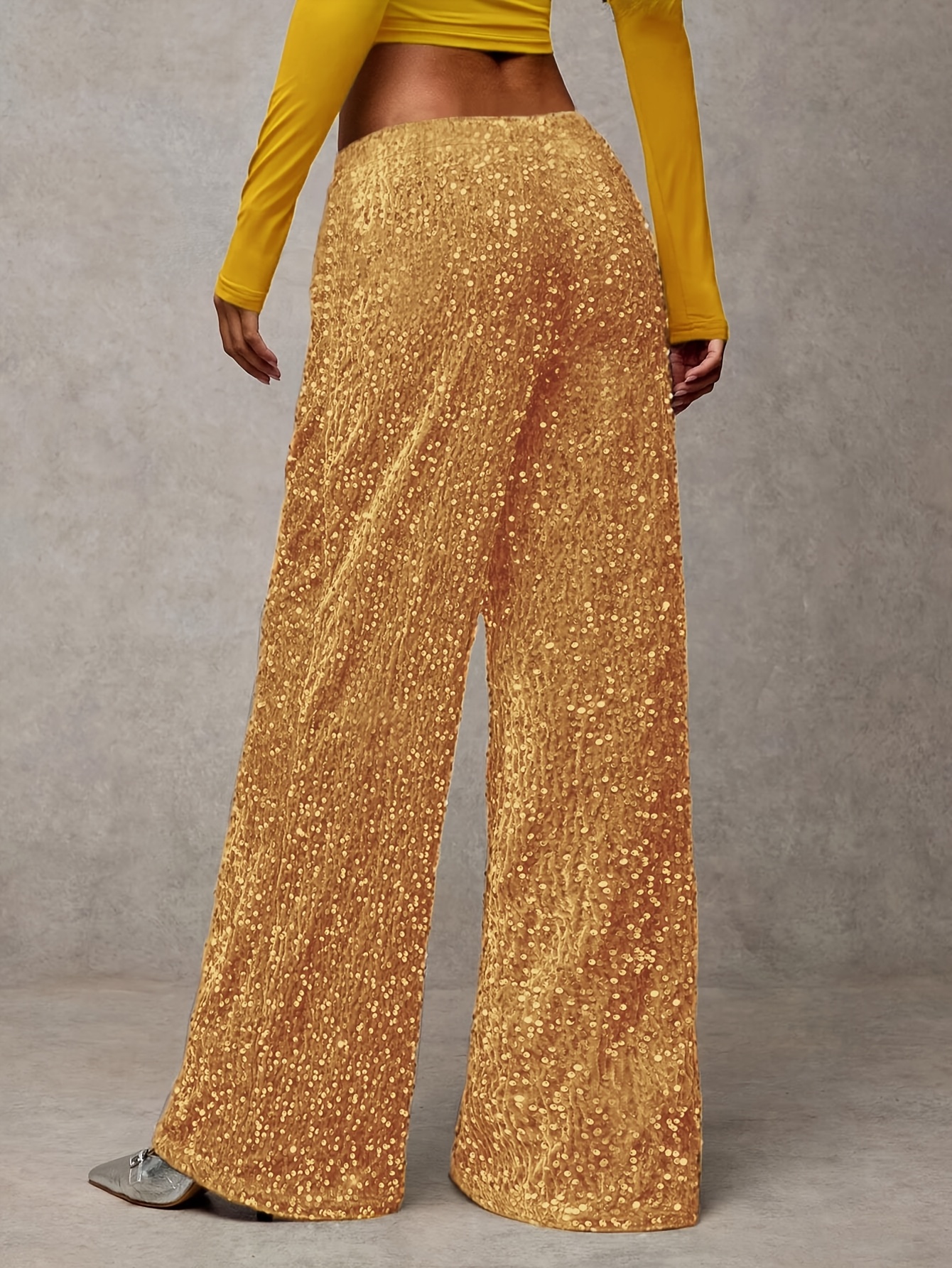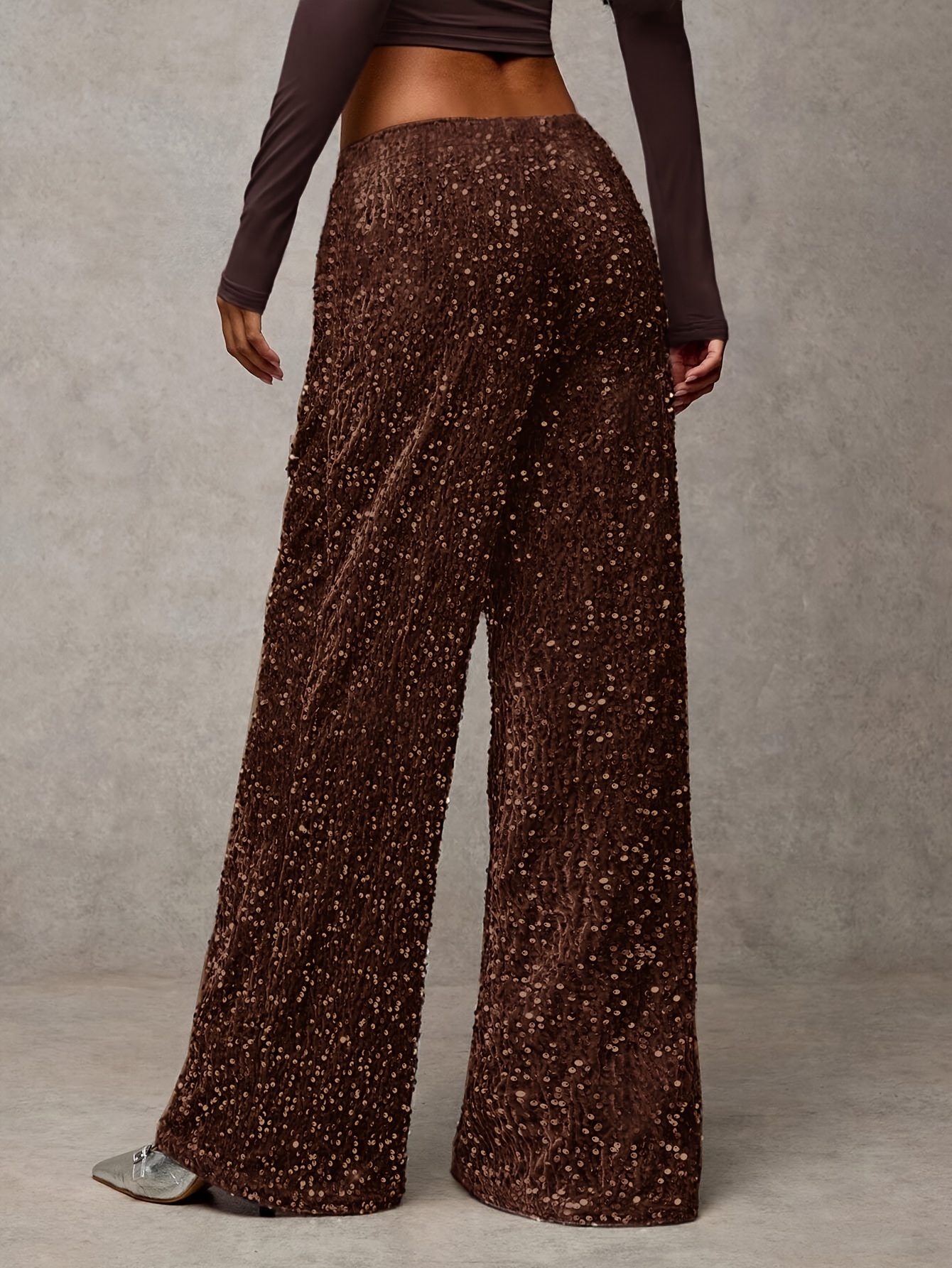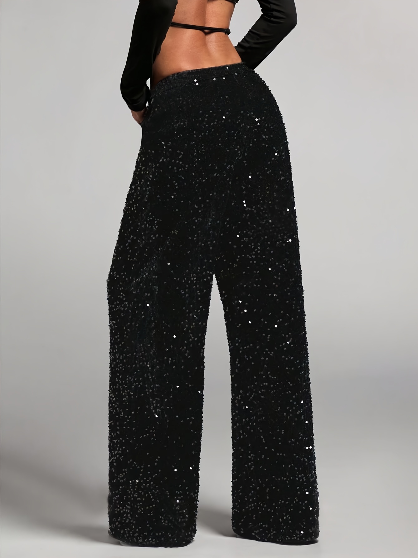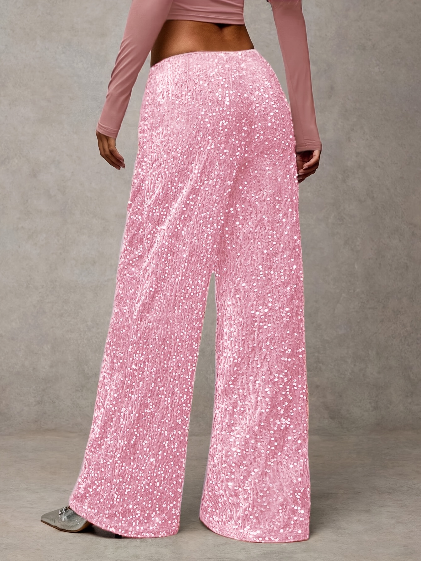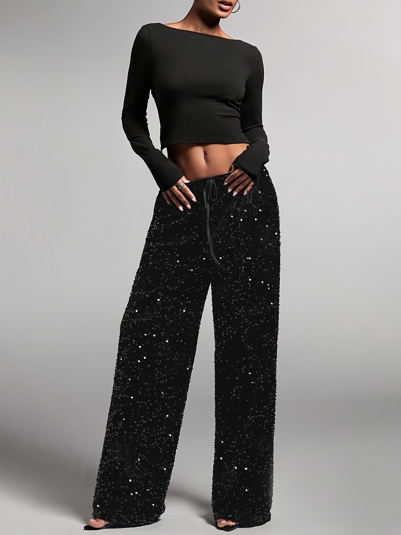 Women's Front-tie Bow Sequin Trousers, Elegant Targeted Style.